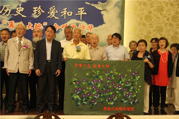 欢迎会上,日本“再生大地”合唱团的成员们演唱了《序曲 大地》、《伪满洲国抚顺》、《平顶山事件》、《抚顺的牵牛花》四首曲目,他们充满感染力的合唱表演,让我们仿佛回到了那个战火纷飞的年代,再一次认真倾听了抚顺战犯管理所对日本战犯进行宽大处理的感人故事。