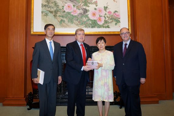 2014年8月20日,李小林会长会见爱尔兰议会参、众两院外交贸易联合委员会主席帕特·布林和爱尔兰驻华大使康宝乐一行。