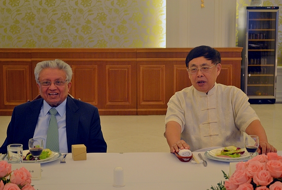 2012年9月5日晚,中欧协会陈昊苏会长、李建平副会长在对外友协和平宫宴请应我会邀请来华访问的英国华威大学工程制造学院院长、上议院议员库玛·巴塔查雅勋爵一行。