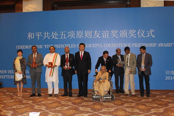 国家主席习近平19日在新德里会见印度友好人士、友好团体代表并颁发和平共处五项原则友谊奖表彰他们长期致力于中印友好事业。