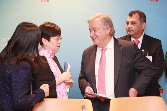 李小林会长与联合国秘书长、“每个妇女 每个儿童”高级指导委员会联合主席安东尼奥·古特雷斯谈话