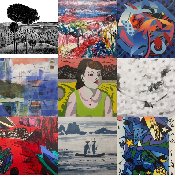 来自中国、加拿大、美国、英国、荷兰、日本、韩国、波兰等八个国家的艺术家参加了此次展览,共展出作品120件,种类包括版画、油画、刀势画、压花、水彩画、水墨画、摄影等。舟山本地艺术家的海洋题材作品参加了此次展览。