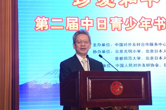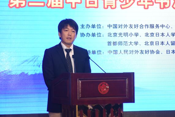 北京日本人学校奥田修也校长在致辞中讲到:我参加了前年举办的首届大会,那次活动扩大了日中友好的范围,是一次非常好的盛会。据说热爱书法的人都有一颗沉稳之心,我相信参加此次活动的孩子们都会以沉稳之心作为思想的基础,将来一定会成为密切日中关系的友好大使。希望互为重要邻邦的日本与中国永远相互尊重,友好合作。