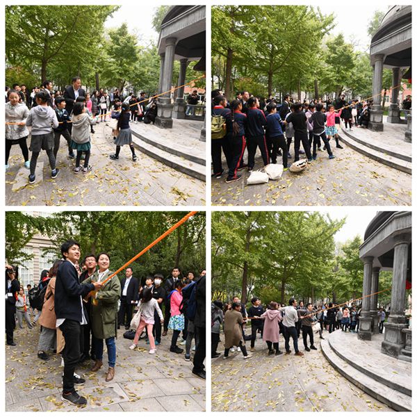 书法交流活动结束后,两国学生们混合编组,共同进行了“友好车轮奔向未来”的集体游戏竞赛。大家团结互助,无需语言,配合默契,你追我赶。有些孩子获胜后高兴地蹦了起来。