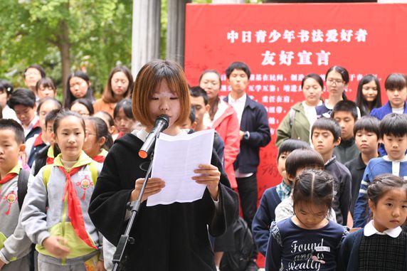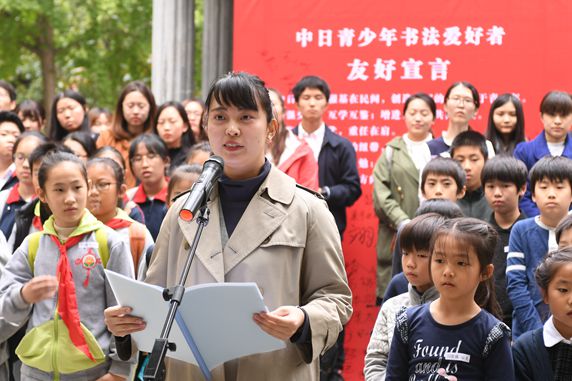 首都师范大学的学生聂易茗在友好宣誓中发言说:在此次活动中,中日青少年们进行了以书法为主题的友好交流,在丰富多彩的活动中种下了友谊的种子。我们以书法为纽带,以和平友谊为宗旨,进一步体会到了中日友好互信的意义。和平钟声美好而悠长,愿我们借此机会将和平的种子播撒于两国大地,将和平的信念发扬光大。衷心祝愿中日两国继续增进友好交流,让友谊之树常青。