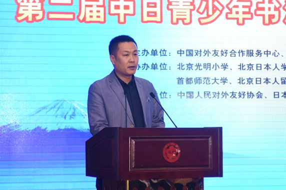 中国对外友好合作服务中心主任张聚祥在开幕词中讲到:习近平主席曾指出:中日友好的根基在民间,中日关系的前途掌握在两国人民手里。越是两国关系发展不顺时,越需要双方加强民间交流,为两国关系改善发展创造条件和环境。为此,我们主办方为中日两国的青少年搭建了这样一个相互学习,共同提高的友好交流平台。希望通过本次活动,各位青少年书法爱好者创作出优异的作品,结下深厚的情谊,充分表达两国青少年对和平的热爱和向往,将来为中日友好及世界和平事业做出应有的贡献。