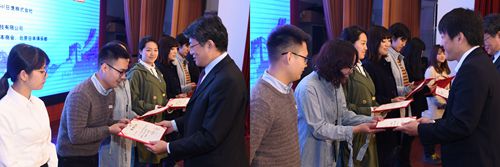 由中国书法家协会理事李纯博、书法家李正、胡杨和日本书法家前田里恵、林君子组成的书法大赛评审委员会,评选出了若干名金奖、银奖和铜奖。中国人民对外友好协会秘书长李希奎和日本国驻华大使馆参赞福田高干嘉宾为金奖获得者颁发了荣誉证书。大会还向所有获奖者赠送了定制的精美毛笔套装,制笔大师武京生亲自将其监制的毛笔递交给主办方。李纯博、李正和前田里恵分别对参赛作品进行了全面细致的讲评。李纯博作为两届评委会主任委员评价道,本届书法参赛作品比首届作品水平有了很大提高。李正和胡杨还分别向日本主办方现场赠送了书法作品篆体“和”字,隶书“厚德载物”,表达了对主办方的敬意和期许。
