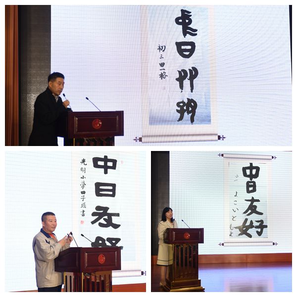 大会总策划汪革平介绍说:两届大会都特别邀请中国国际广播电台日语部的张怡康用中日文双语主持。她清晰悦耳的声音和阳光亲和的风格赢得了学生们的喜爱。首届大会的书法大赛题目是“和平友好”,特意邀请了和平里第九小学参加。本届大会恰值中日邦交正常化45周年,书法大赛题目选择了“中日友好”,专门邀请了北京光明小学和首都师范大学的学生,希望中日关系不断走向光明,培育中日世代友好的后继传人。