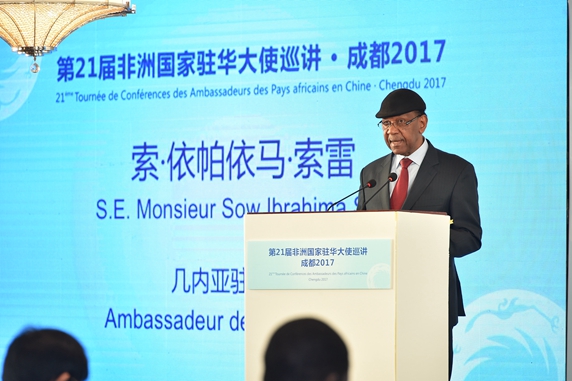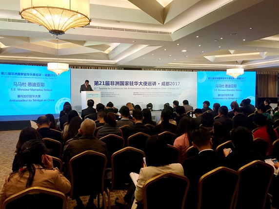 由我会主办、成都市外办和市友协承办的第21届非洲国家驻华大使巡讲活动于10月25日在四川省成都市举行。几内亚驻华大使索·依帕依马·索雷、毛里求斯驻华大使李淼光、塞内加尔驻华大使马马杜·恩迪亚耶与成都市相关部门代表和企业家共100余人与会。全国对外友协亚非部副主任李海、成都市副市长刘宏葆出席巡讲会并致辞。
