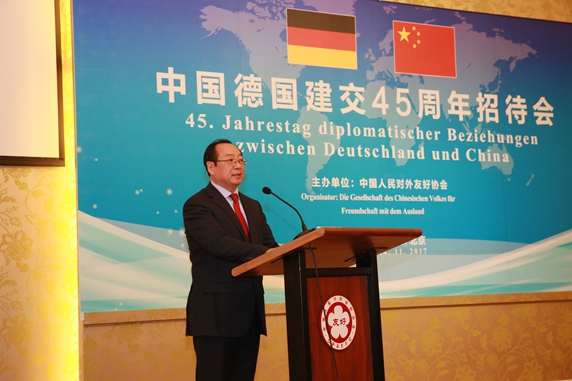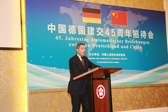全国对外友协副会长、中德友协会长宋敬武在致辞中谈到,中德建交45年来,两国秉承相互尊重、平等互利的精神,深化各领域的务实合作,已建立起70多个双边磋商和合作机制。中德全方位战略伙伴关系已成为中欧之间最重要双边关系之一,在促进中欧合作中起到了引领和示范作用。