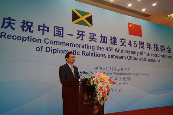 11月21日,庆祝中国—牙买加建交45周年招待会在京举行。全国政协副主席、中拉友协会长马培华、全国对外友协副会长谢元、牙买加驻华大使丘伟基以及部分拉美、加勒比国家驻华大使出席招待会。招待会前,马培华副主席简短会见了丘伟基大使。