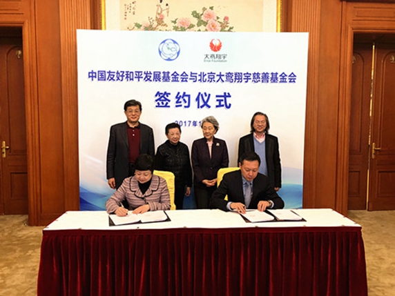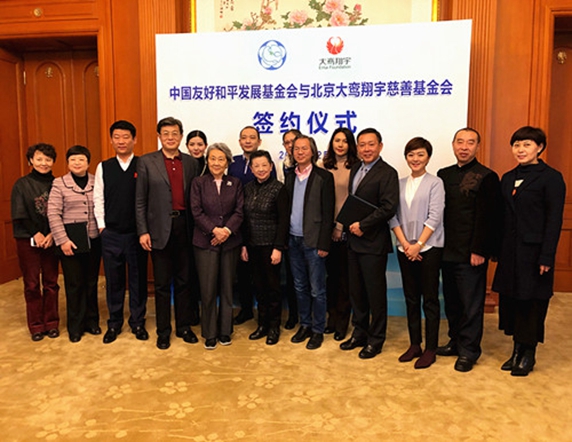 其间,中国友好和平发展基金会秘书长贾伶与北京大鸾翔宇慈善基金会理事长沈清共同签署了《战略合作协议》。