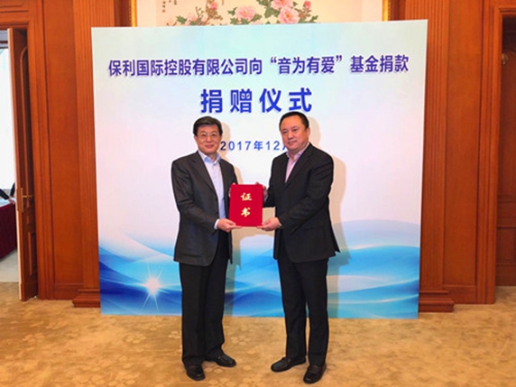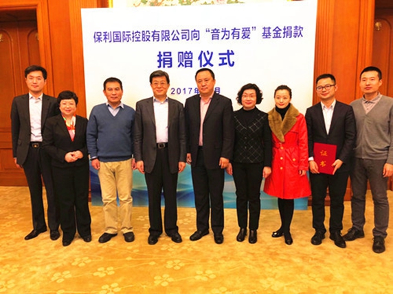12月27日,保利国际控股有限公司(以下简称:“保利国际”)向“音为有爱基金”捐赠仪式在北京举行。全国对外友协秘书长、中国友好和平发展基金会理事长李希奎,保利集团总经理助理、保利国际控股有限公司副总经理王兴晔,中国友好和平发展基金会秘书长贾伶,保利国际控股有限公司纪委书记曹文素,沈阳弘鼎康医疗器械有限公司董事长兼CEO王阳等出席了活动。