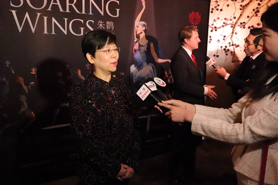 李小林会长在首演酒会上致辞并接受了记者采访,她表示朱鹮是和平之鸟,友谊之鸟,自然之鸟,人类与环境友好相处之鸟,希望它能给大家带来纯美的艺术享受的同时,唤起我们珍惜爱护环境的意识;她说:“这台舞剧非常美,把它介绍给美国朋友是我长期以来的梦想”。