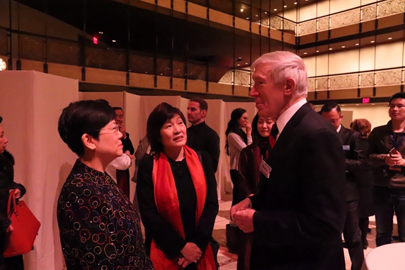 1月5日晚,由我会和上海市委宣传部联合出品,上海歌舞团演出的舞剧《朱鹮》在纽约林肯艺术中心大卫·寇克剧院举行美国首场演出。李小林会长,我驻纽约总领事章启月,我驻联合国副代表、特命全权大使吴海涛,美国前副国务卿、基辛格咨询公司副总裁罗伯特•霍马茨,尼克松总统外孙克里斯托弗·考克斯,美国全国州议会会议国际部主任凯西·威金斯,康涅狄格州众议院多数党领袖助理克里斯托弗·佩罗内,以及联合国,美国州议会代表,经济,社会,文化等各界人士近2000人出席并观看演出。