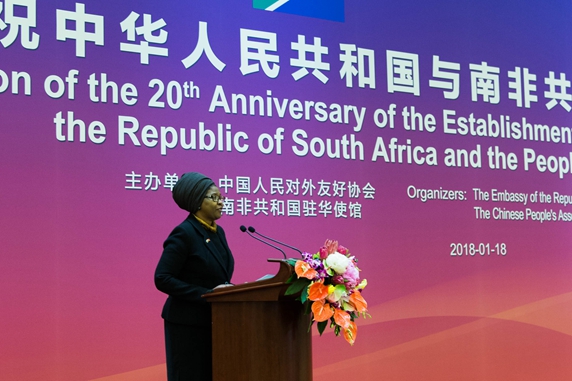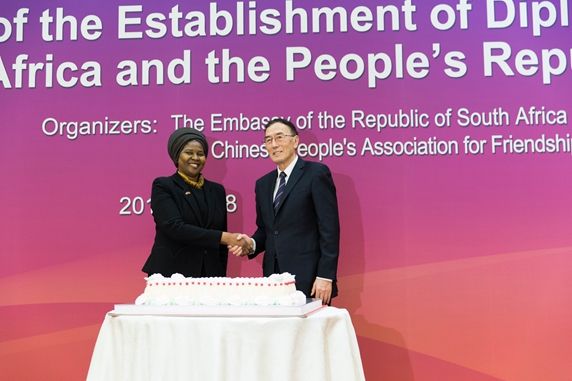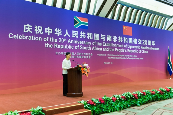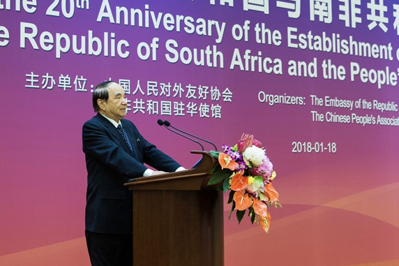 1月18日,我会与南非驻华使馆在北京共同举行招待会,庆祝中国与南非建交20周年。全国人大常委会副委员长向巴平措、全国政协原副主席、中国非洲人民友好协会会长阿不来提·阿不都热西提、教育部副部长田学军、军委后勤保障部少将沈尤清、我会副会长林怡、外交部部长助理陈晓东以及南非驻华大使多拉娜·姆西曼等中非各界人士共300余人出席招待会。