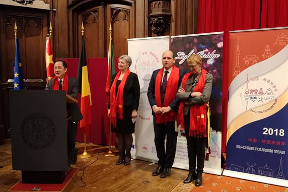 2月22日,由中国驻欧盟使团,中国驻比利时大使馆,中国人民对外友好协会,四川省人民政府,欧盟委员会和布鲁塞尔市政府共同举办的“2018中欧旅游年- 中国彩灯点亮欧洲心脏大型庆祝活动”在布鲁塞尔大广场成功举办。布鲁塞尔市长克劳斯,中国驻欧盟使团张明大使,四川省副省长杨兴平和全国对外友协沈昕主任分别在开幕式上致辞。中外嘉宾300多人出席了开幕式。四川自贡彩灯,川剧变脸和天坛雅乐在布鲁塞尔大广场营造出热情洋溢的中国新年氛围,吸引了大量当地民众和游客前来参观和广泛的媒体报道。