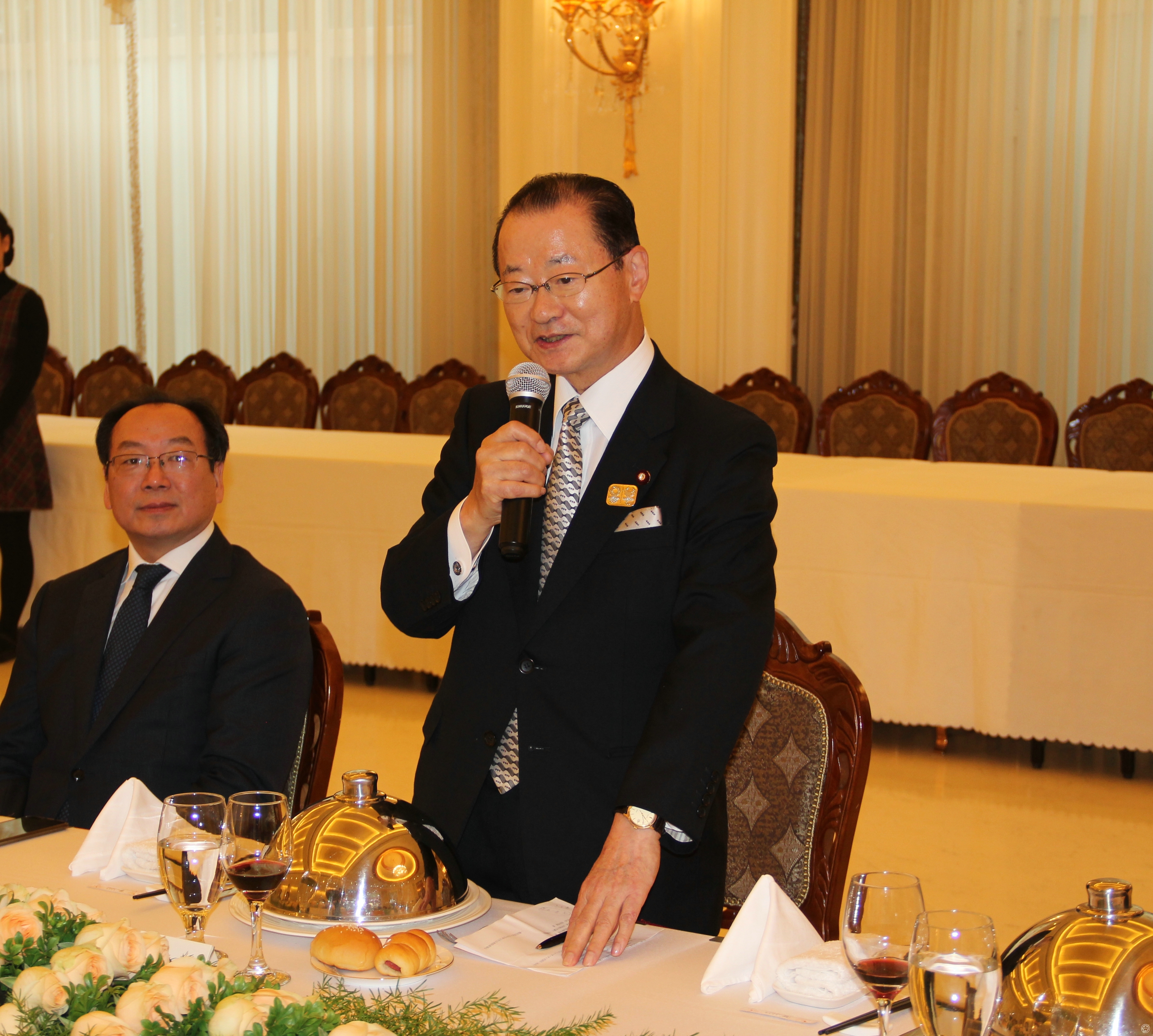 河村建夫表示,在两国各界的共同努力下,日中关系重回正轨,日本首相时隔7年实现对华正式访问,令人振奋。为实现日中关系的持续改善发展,两国大力开展民间和人文交流,巩固两国友好的民意基础,具有重要意义。今后愿与中方共同开展更多丰富多彩的友好交流活动,为两国关系实现新的更大发展贡献力量。