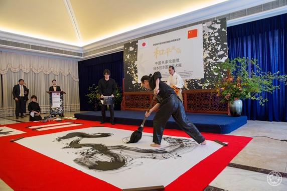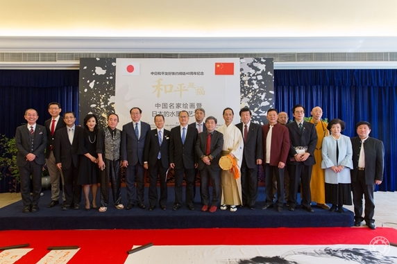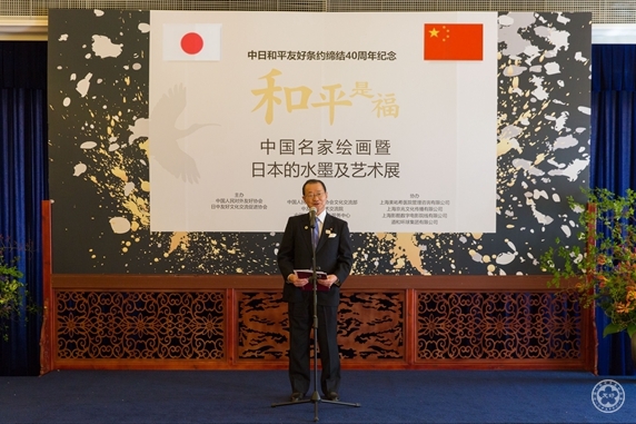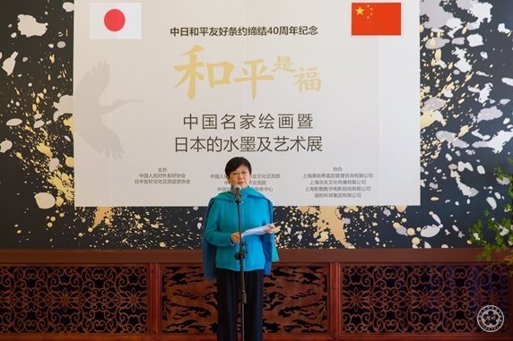 为纪念中日和平友好条约缔结40周年,2018年10月26日,由中国人民对外友好协会与日中友好文化交流促进协会共同主办“和平是福”中国名家绘画暨日本的水墨及艺术展在北京开幕。