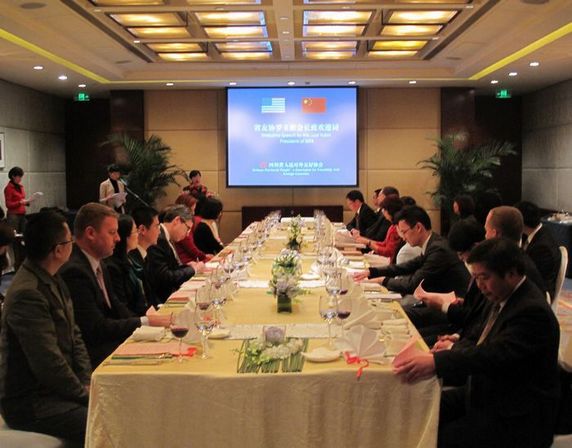 12日晚间,代表团出席了由四川省友协主办的“中美地方政府领导人交流会”,与来自我省自贡、遂宁、江油等地的市领导和部门负责人汇聚一堂,共叙友谊,畅谈合作。交流会由省友协专职副会长刘敏主持,罗玉彬会长致欢迎辞。罗玉彬会长谈到,省友协特意邀请自贡、遂宁、江油三个市的市长参加此次交流会,旨在帮助美国朋友更加了解四川和四川的城市,为双方合作提供思路,探讨合作机遇。省友协愿意不断努力,积极发挥牵线搭桥、推进项目的作用,把中美友好事业不断推向前进,造福两国人民。自贡市副市长张邦举、遂宁市副市长邓为、江油市副市长王磊以图文并茂的方式向客人分别介绍了自己所代表的城市,希望与美方加强联系,推动双方城市间在各领域的务实合作。