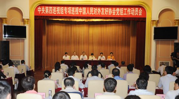 根据中央统一部署,2016年7月4日上午,中央第四巡视组专项巡视中国人民对外友好协会党组工作动员会召开。会前,中央巡视工作领导小组办公室负责同志向全国友协会长、党组书记李小林同志传达了习近平总书记关于巡视工作的重要讲话精神。会上,中央第四巡视组组长马瑞民就即将开展的专项巡视工作作了讲话,中央巡视工作领导小组办公室有关负责同志就配合做好巡视工作提出要求,李小林主持会议并作表态发言。