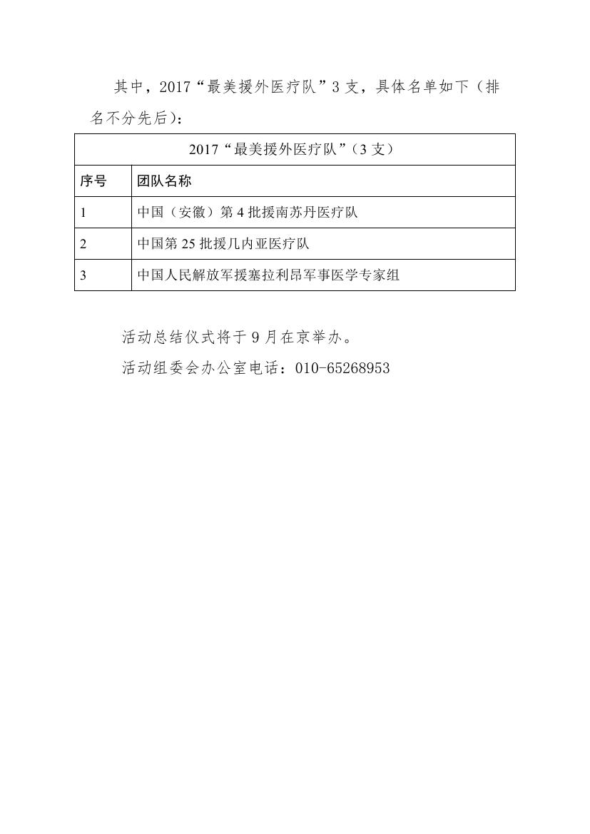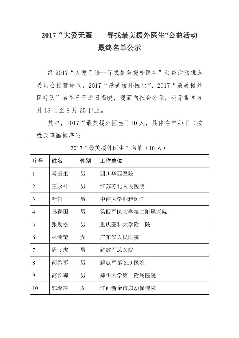 2017“大爱无疆——寻找最美援外医生”公益活动最终名单公示