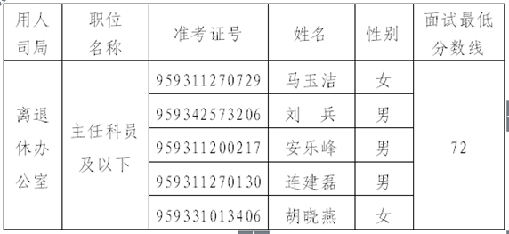 根据笔试成绩由高到低,按照1:5的比例,确定参加面试的考生名单(按姓氏笔画排序):