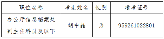 因个别考生放弃面试资格,根据公开遴选有关规定,按照笔试成绩从高到低的顺序,递补以下考生为面试人选: