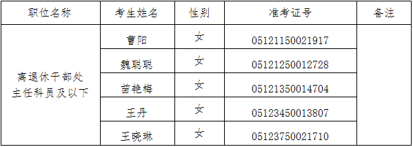 根据笔试成绩由高到低,按照1:5的比例,确定参加面试的考生名单(按准考证号排序):