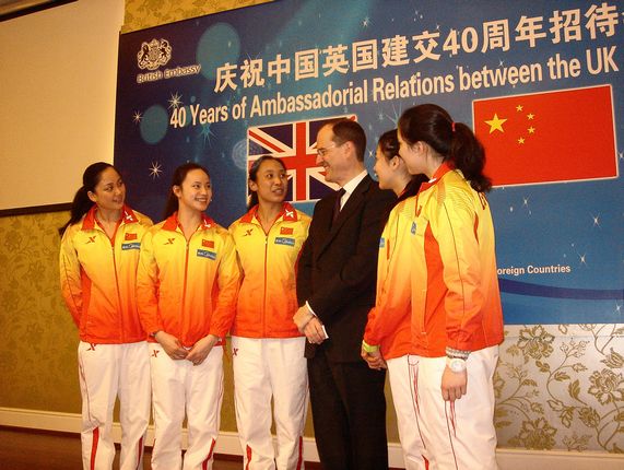 Among the 200 people at the reception were former Chinese ambassadors to Britain Ma Zhengang, Jiang Enzhu and Ma Yuzhen, representatives from the foreign, education and cultural ministries, the All-China Youth Federation, the General Administration of Sport of China, the Chinese Academy of Social Sciences, the China Institute of International Studies, diplomats of the British Embassy, representatives from the China-Britain Business Council and other British organizations in China.