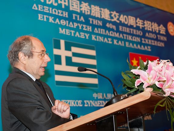Theodore Georgakelos, the Greek Ambassador to China, addresses the reception