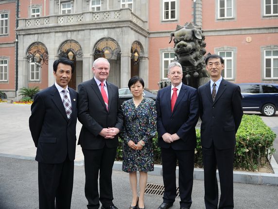 On May 27, Mme. Li Xiaolin, the president of the Chinese People’s Association for Friendship with Foreign Countries met with Mr. Peter Robinson and Mr. Martin McGuinness, First Minister and Deputy First Minister of Northern Ireland, UK.