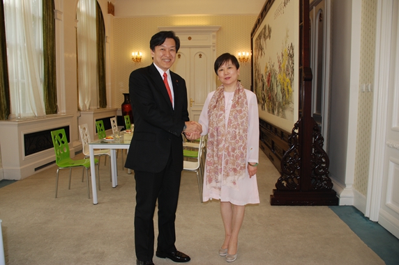 4月23日,李小林会长在京会见日本众议院议员、前外务副大臣山口壮。