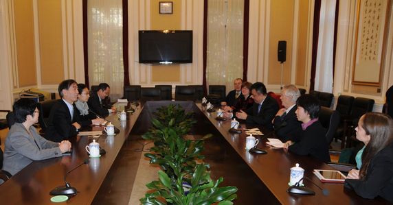 Vice President Li Jianping extended his welcome to Mr. Yves Dauge and his group, as well as made a brief introduction on the status of the CPAFFC and its contact to France. He expressed that, as an organization specially engaged in non-governmental international exchanges in China, the CPAFFC attached great importance to the friendship with France. It has kept close cooperation with France in fields like local governments, agriculture for many years, at the same time established a lot of mature mechanisms such as Sino-France Forum. She hoped the CPAFFC would develop pragmatic with ACCR in the future in fields of culture and art, so as to further strengthen the people-to-people basis of China-France friendship.