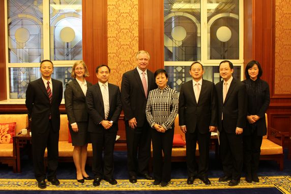 On 13th February,President Li Xiaolin met with Mr. Gregg Ward, Senior Vice President for Global Government Relations of United Technologies Company in Beijing. President Li briefed Mr. Ward on CPAFFC’s recent exchanges and cooperation programs with other countries and expressed the willingness to work together with the U.S. business community to further promote the China-US friendship. Mr. Ward expressed thanks to President Li for meeting him and emphasized that the Chinese market is of strategic importance to the future development of UTC. They also exchanged views on collaborating to conduct projects of China-US friendly exchanges and public welfare.