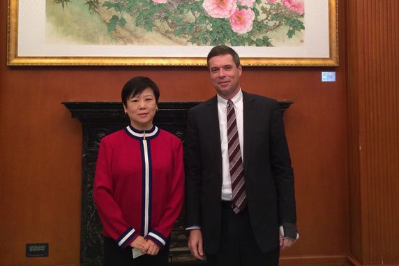 President Li positively appraised the CPAFFC’s cooperation with the German political funds, Germany-China Friendship Association and the German Embassy in China. She made an introduction of the CPAFFC’s recent working plan on German affairs and the brief status of the cooperation among the Chinese friendship cities with their German counterparts. She expressed that, she would lead a youth football team from Zhidan County of Shaanxi Province to visit Germany and play a friendly match with the German players, which was sponsored by Volkswagen and would be a part of the CPAFFC’s Rainbow Bridge Programs. This event would make the children from the Chinese rural area learn more about Germany, and would bring the Chinese and German youth closer.