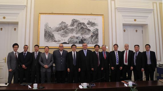 In the morning of March 11th , 2014, Mr. Li Xikui, CPAFFC Secretary General met with Mr. Jean Rosanvallon, CEO of Dassault Falcon Company, Mr. Jean-Michael, Senior VP of International Sales Department, Mr. Olivier DeLapeyriere, Mr. Dror Kohn, Director of DStone Ltd. in Israel, Mr. Yair Bar, VP of DStone Ltd.