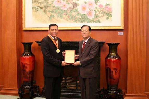 Afterwards, Vice President Xie Yuan fully recognized the contribution that Mr. Sjamsoeddin has done to China-Indonesia people-to-people friendly relation, and conferred him China-Indonesia Friendship Contribution Award. Mr. Sjamsoeddin was pleasantly surprised with being awarded and appreciated CPAFFC’s recognition encouragement on his work.
