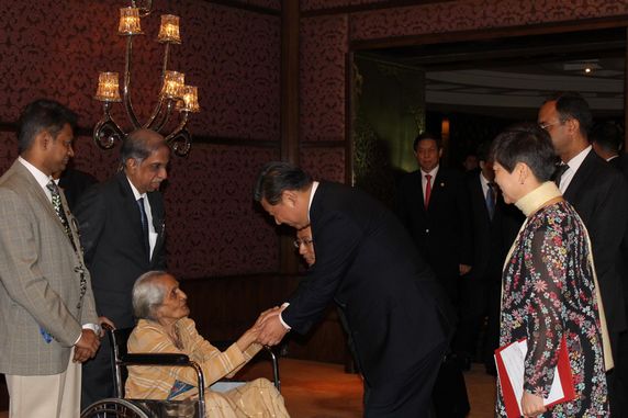 The Five Principles of Peaceful Coexistence Friendship Award was conferred on the representatives of the Dr. Dwarkanath Kotnis family, the Dr. Dwarkanath Kotnis Memorial Committee, the Department of Chinese Language and Culture (Cheena Bhavana) with the Visva-Bharati University, as well as the India-China Friendship Association. Dr. Jyoti Mohapatra, secretary general of the Friends of China Society, and Dr. Mohan Reddy, secretary general of the Andra Pradesh Chapter of the India-China Friendship Association, were also granted the award. President Xi Jinping spoke highly of the important contributions the awardees have made over a long period of time to the China-India friendship, and paid tributes through them to Indian friends from all walks of life that have dedicated to bilateral friendship .