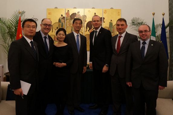 On November 3, at the invitation of the Irish Ambassador, Vice President Li Jianping attended the reception that the Irish embassy held for its Trade Mission led by the Irish Minister for Agriculture, Food and the Marine. He met with Minister Coveney and the Irish Ambassador to China, Mr. Kavanagh. They exchanged views on promoting pragmatic cooperation and people-to-people exchanges between China and Ireland.