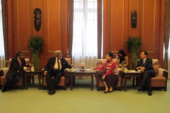 President Li Xiaolin and Vice president Song Jingwu met with Mr. Nirj Deva Chairman of EU-China Friendship Group of European Parliament, Honorary Chief Advisor to the Sri Lankan Prime Minister on April 1.