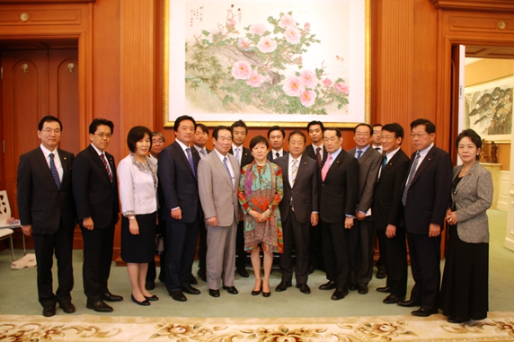 On May 7th, CPAFFC President Li Xiaolin met with delegation headed by NUKAGA FUKUSHIRO, President of Heisei Kenkykai (Heisei Research) from Liberal Democratic Party of Japan and the former minister of finance of Japan.