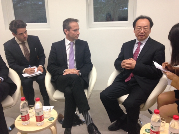 On 25th October, Vice President Song Jingwu attended the Opening Ceremony of the Danish Culture Center in the 798 Art District. On the meeting with the Danish Foreign Minister Mr. Kristian Jensen, Mr. Song briefly introduced the aim and main tasks of the CPAFFC, reviewed the reception and seminar which were successfully co-hosted by the CPAFFC and the Danish Embassy on the occasion of the 65th anniversary of the diplomatic ties between China and Denmark, expressed the willing of promoting the regional cooperation and people to people exchange between China and Denmark. Minister Jensen said that people to people exchange is an important constituent part of the Chinese and Danish bilateral ties. Denmark is going to announce the year of 2017 and 2018 to be the Danish tourism years and hoping more Chinese tourists to come to Denmark and enhancing the mutual understanding between the two peoples.