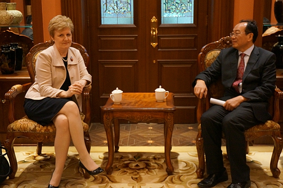 On 9th November, Vice President Song Jingwu met with Prof. Andrea Nolan, President of Edinburgh Napier University. He welcomed the visit of President Nolan to the CPAFFC, briefly introduced the main functions and recent major works of the association and reviewed the China-UK Youth Exchange Project Ten Persons’ Stories which was successfully co-organized by the CPAFFC and the Edinburgh Napier University in 2014. He indicated that the recent successful visit of Chinese President Xi Jinping to the UK will encourage the cooperation between China and the UK in various fields. The CPAFFC will continue to promote the cooperation between China and the UK in the fields of local government, culture and people to people exchanges. Looking ahead of the 13th Five Year Plan, Chinese Central Government will devote major efforts to develop the higher education and deepen the agriculture reform, China may learn from the successful experiences of Scotland in the fields of education, agriculture and husbandry.