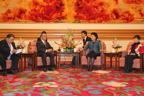 Vice Premier Liu Yandong expressed that developing long-term and stable relations of the two countries complies with the fundamental interest of the two peoples. On the basis of the China-Japan Four Political Documents, China is willing to make efforts together with Japan to carry out the four consensuses reached by the both sides last year, to properly handle with the disputes and to promote the bilateral ties back to the right track again. She hoped that the both sides strengthened the cultural exchanges and local cooperation, further tamping the public support of the bilateral ties.