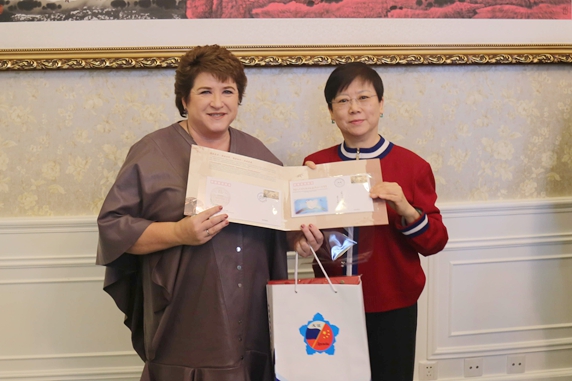 Mrs. Glebova was grateful for President Li’s encounter besides her busy schedule. She also spoke highly of her achievements on the sector of people-to-people exchange. She hoped to further communicate with CPAFFC about the cooperation on the sectors of local governments, youth, education and culture.