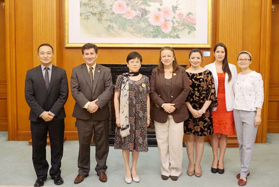 CPAFFC President Li Xiaolin met with the outgoing Colombian Ambassador to China Carmenza Jaramillo on July 28, 2016.