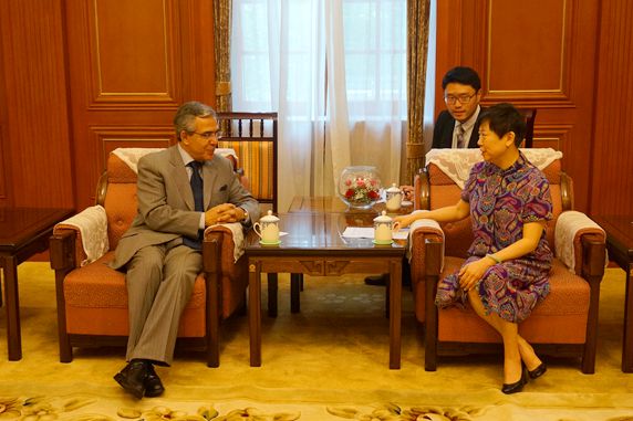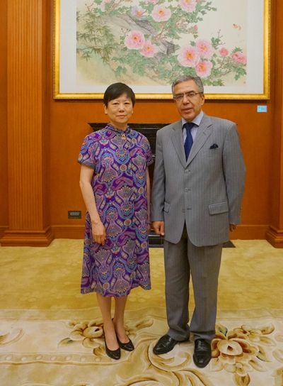 President Li congratulated Ahcène BOUKHELFA on taking his new office. She said that China and Algeria share profound traditional friendship. They had established the strategic cooperation relationship since 2004. The Chinese People’s Association for Friendship with Foreign Countries (CPAFFC) and the Chinese-Arab Friendship Association (CAFA) have been keeping close contact with Algeria-China Friendship Association (ACFA) for several years and have made actively efforts on promoting the friendship of the two peoples. When Chinese President Xi Jinping was visiting Egypt in January 2016, CPAFFC held the awarding ceremony on China-Arab Friendship Outstanding Contribution Award, President Xi met with the winner ACFA President Smail Debeche, and this completely proved that the Chinese side paid high attention to develop the friendly cooperation of the people-to-people between China and Algeria. In the future, the both sides should work together to present the active factors of the bilateral relations to the two peoples, especially the youth.