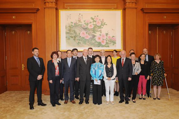 Mme. Li Xiaolin, President of the Chinese People’s Association for Friendship with Foreign Countries (CPAFFC) met with a delegation led by Mr. Kurt Karst, President of Federation of German-China Friendship Association (FGCFA) on April,10. Both sides had an in-depth discussion on cooperation, people-to-people diplomacy, the current European situation and etc.