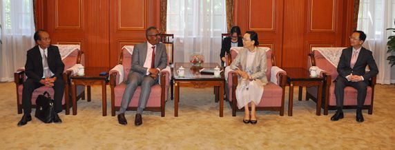 At the invitation of CPAFFC, H. E. Narson Rafidimanana, Minister of State for Presidential Projects, Land Management and Equipment of Madagascar, paid a visit to China from May 13 to 18 of 2017 with his delegation. During the visit, Mr. Rafidimanana attended the concerning activities of the Belt and Road Forum for International Cooperation, and a luncheon held by President Li Xiaolin of CPAFFC. Vice President of CPAFFC Mme. Lin Yi, Director-General of Guangdong Provincial Foreign Affairs Office Mr. Chen Qiuyan, Mayor of Wenzhou Mr. Zhang Geng and his deputy Mr. Miao Weilun met with or dinned with the delegation respectively. The delegation also held a business meeting with China-Africa Chamber of Commerce of Wenzhou, and took study tours to Chint Group, Gold Emperor Group and Kangle Pharmaceutical.